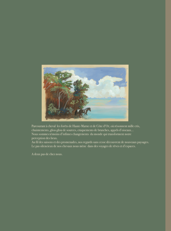 Parcourant à cheval les forêts de Haute-Marne et de Côte-d'Or, où résonnent mille cris, chuintements et glouglous de source, craquements de branches, appels d'oiseaux...