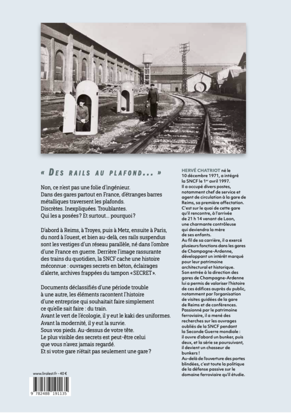 À paraître« Des rails au plafond »Non, ce n’est pas une folie d’ingénieur.Dans des gares partout en France, d’étranges barres métalliques traversent les plafonds. Discrètes. Inexpliquées. Troublantes.Qui les a posées ? Et surtout… pourquoi ?D'abord à Reims, à Troyes puis à Metz, ensuite à Paris, du Nord à l’Ouest — et bien au-delà — ces rails suspendus sont les vestiges d’un réseau parallèle, né dans l’ombre d’une France en guerre. Derrière l’image rassurante des trains du quotidien, la SNCF cache une histoire méconnue : ouvrages secrets en béton, éclairages d’alerte, archives frappées du tampon « SECRET ». Documents déclassifiés d’une période trouble à une autre, les éléments racontent l’histoire d’une entreprise qui souhaitait faire simplement ce qu’elle sait faire : du train.Avant le vert de l’écologie, il y eut le kaki des uniformes.Avant la modernité, il y eut la survie.Sous vos pieds. Au-dessus de votre tête.Le plus visible des secrets est peut-être celui que vous n’avez jamais regardé.Et si votre gare n’était pas seulement une gare ?